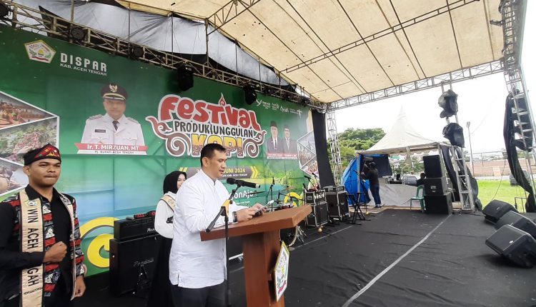 Takengon – Penjabat Bupati Aceh Tengah Ir. T. Mirzuan, MT, yang diwakili oleh Asisten Administrasi Umum Setdakab Aceh Tengah Sukirman, S.STP, M.Ec.Dev, membuka secara resmi Festival Produk Unggulan Kopi Tahun 2024, yang berlangsung di Lapangan Musara Alun, Jumat (31/05/2024).