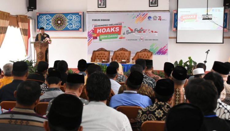 Takengon – Diskusi bertema bersinergi melawan hoaks demi damai di bumi pertiwi digelar di Takengon, Aceh Tengah. Kegiatan dibuka langsung oleh Bupati Aceh Tengah Shabela Abubakar, Sabtu (24/8/2019) di gedung Ummi Pendopo.
