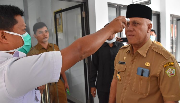 Takengon – Hari ini Senin, 23/03, Bupati Aceh Tengah Drs. Shabela Abubakar meninjau sekretariat gugus tugas dan Rumah Sakit Umum Daerah Datu Beru Takengon. Hal ini dilakukan untuk memastikan situasi terkini tentang perkembangan pencegahan penyebaran covid 19 di Kabupaten Aceh Tengah.