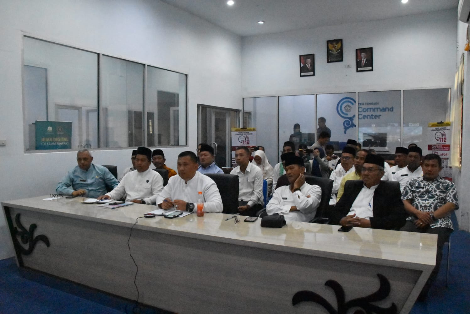 Sementara, berjarak 2244.39 Km atau 1391.52 Mil, Asisten Administrasi Umum Setdakab Aceh Tengah, Sukirman, S.STP., M.Ec.Dev., beserta Para Staf ahli, Para Asisten, Para Kepala Peragkat Daerah Kabupaten Aceh Tengah, Para Kepala Bagian di Lingkungan Setdakab Aceh Tengah, beserta jajaran, mengikuti arahan melalui virtual melalui Aplikasi Zoom Meeting di Command Center Diskominfo Kompleks Setdakab Aceh Tengah, Pada Jumat (25/04/2025).