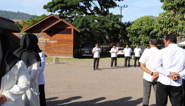 Takengon – Pj. Bupati Aceh Tengah Ir. T. Mirzuan, MT memimpin apel pagi bersama di Dinas Pariwisata Aceh, Rabu (05/06/2024).