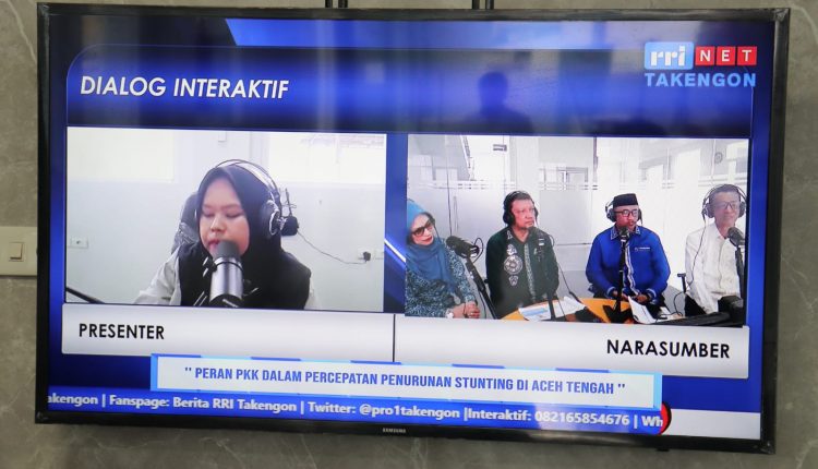 Takengon – Pj. Bupati Aceh Tengah Ir. T. Mirzuan, MT didampingi Pj. Ketua TP-PKK Kabupaten Aceh Tengah Ny. Novita Mirzuan, serta Kadis Kesehatan dan Kadis KBPPPA melakukan dialog interaktif secara live di RRI Takengon, Kamis (13/06/2024), mengangkat tema “Peran PKK Dalam Percepatan Penurunan Stunting Di Aceh Tengah”.