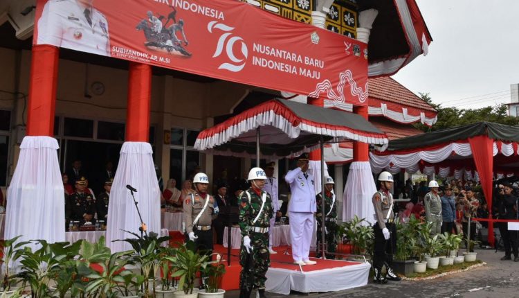 Pj. Bupati Subhandhy Bertindak Sebagai Inspektur Upacara Pengibaran Bendera Merah Putih Peringatan HUT Kemerdekaan RI ke-79 Tahun 2024