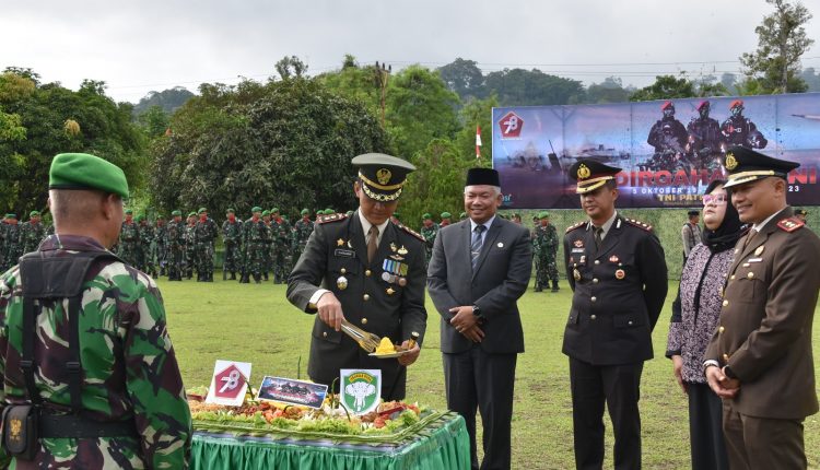 Dandim 0106 /Aceh Tengah Letkol. Inf. Kurniawan Agung Sancoyo, SE, M.Han yang membacakan amanat Panglima TNI, Laksamana TNI H. Yudo Margono, S.E., M.M., C.S.F.A. mengatakan melalui momentum HUT ini kedepannya TNI untuk terus berbenah.