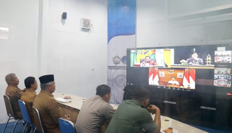 Takengon – Bupati Aceh Tengah yang diwakili Sekda Subhandhy, mengikuti Rapat Koordinasi Pengendalian Inflasi Daerah yang digelar secara hybrid dari gedung Command Centre kabupaten setempat, Selasa (30/08).