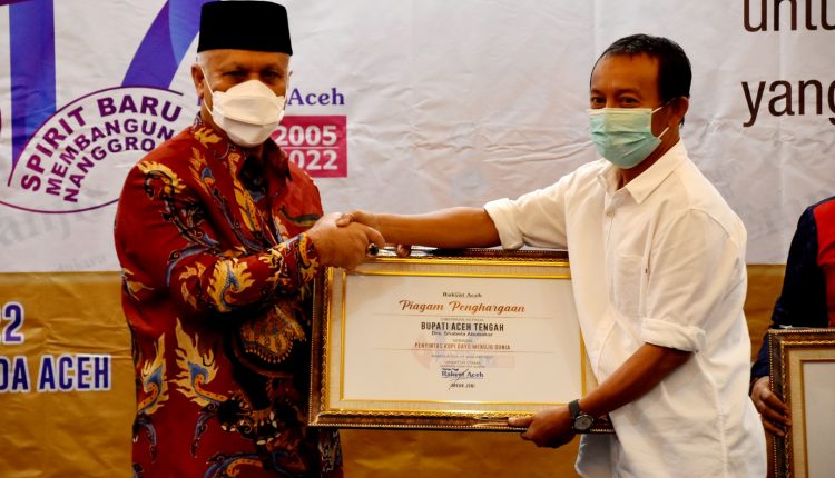 Banda Aceh – Bupati Aceh Tengah menerima penghargaan atau award sebagai Penyintas Kopi Gayo Menuju Dunia dari Media Harian Rakyat Aceh dalam rangka Hari Ulang Tahun (HUT) ke-17 Tahun Media cetak yang ada di Aceh itu.