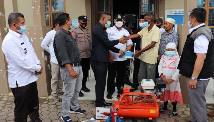 Takengon – Bupati Aceh Tengah Drs. Shabela Abubakar menyaksikan penyerahan bantuan peralatan perbengkelan yang diserahkan oleh Kepala Bank Aceh Syariah Cabang Takengon T. Nasrullah kepada seorang warga Kampung Cibro Kecamatan Celala atas nama Ramli A, bertempat di kantor camat setempat, Rabu (02/03/2022).