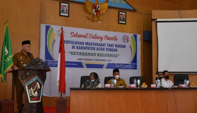 Hal tersebut disampaikan Bupati Aceh Tengah Drs. Shabela Abubakar, saat membuka secara resmi kegiatan penyuluhan Masyarakat Taat Hukum, yang berlangsung atas inisiatif Bagian Hukum Sekretariat Daerah Kabupaten Aceh Tengah, dengan mengangkat Tema “Ketahanan Keluarga” di Gedung Oproom, Setdakab Aceh Tengah, Selasa (9/11/21).